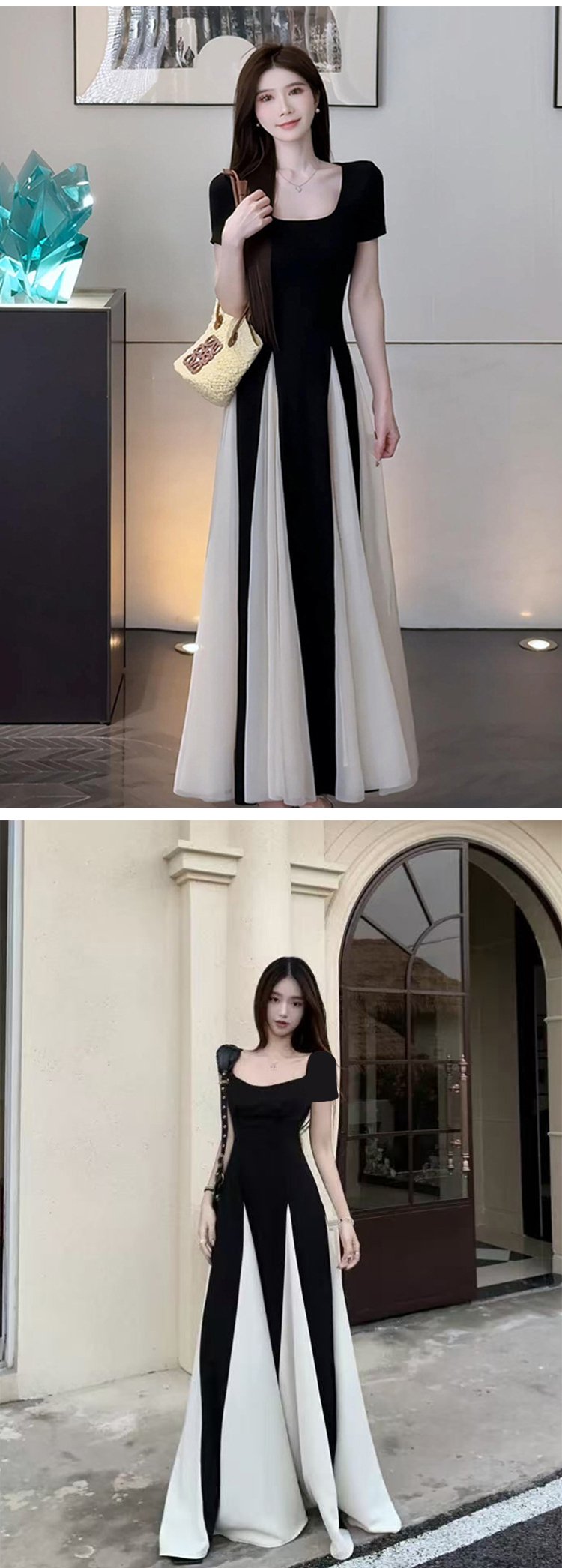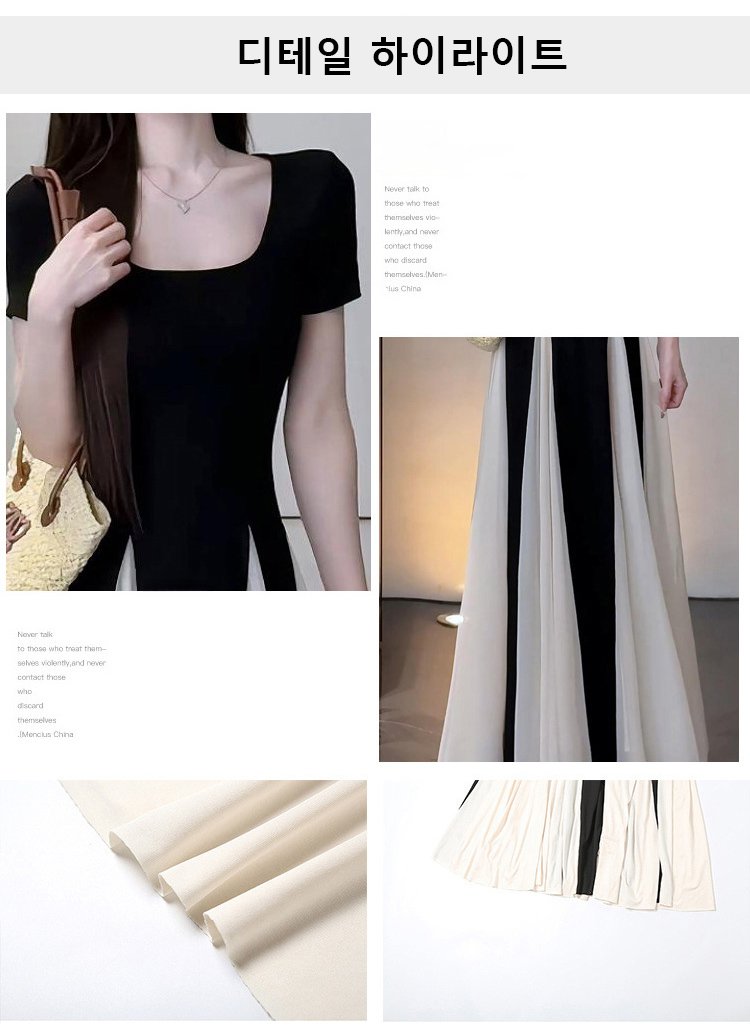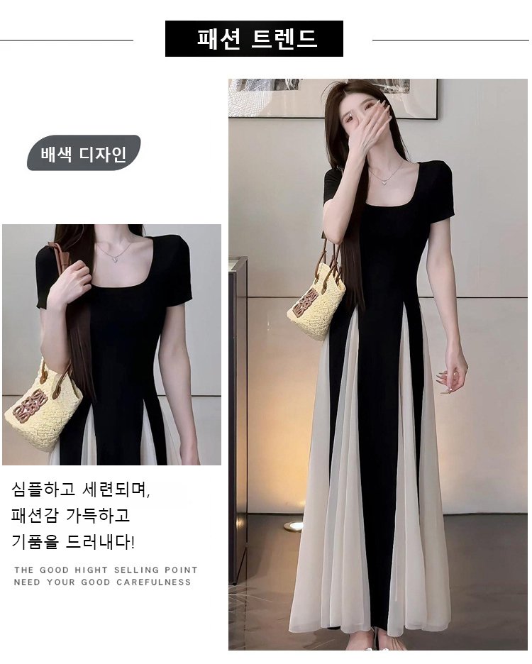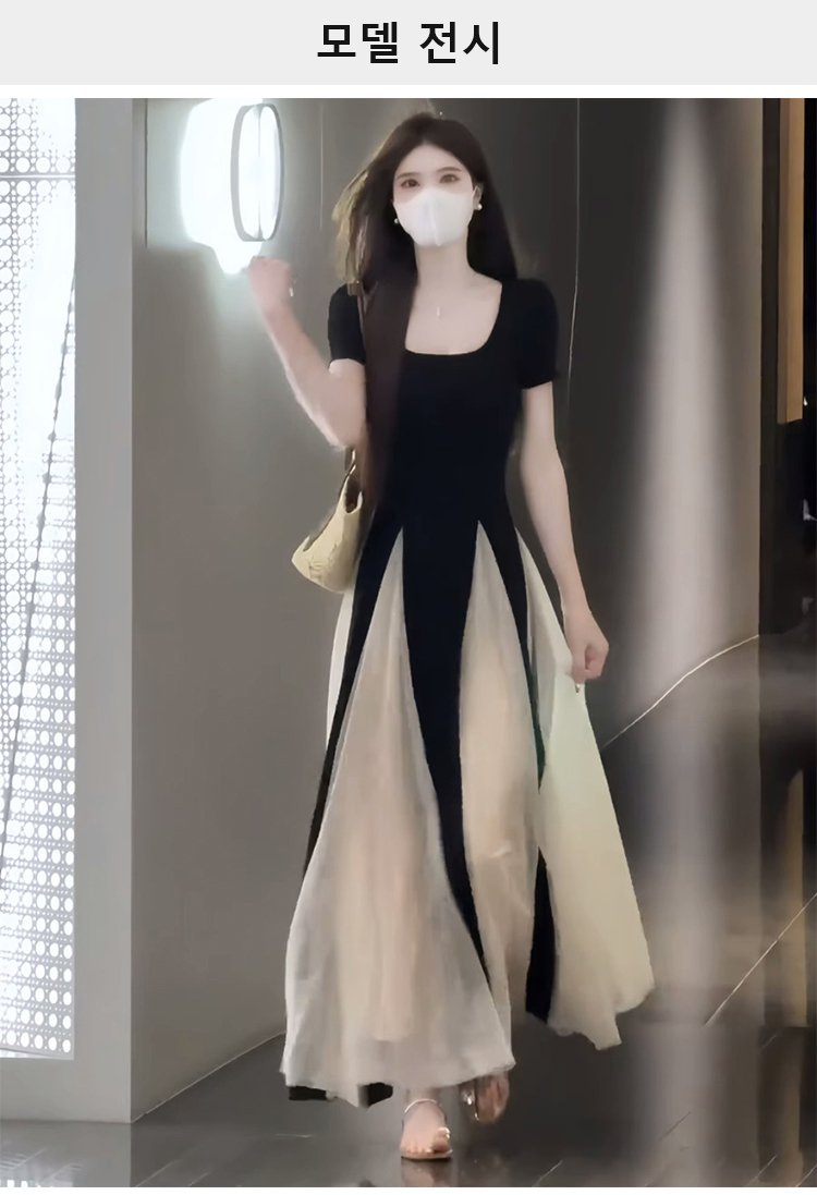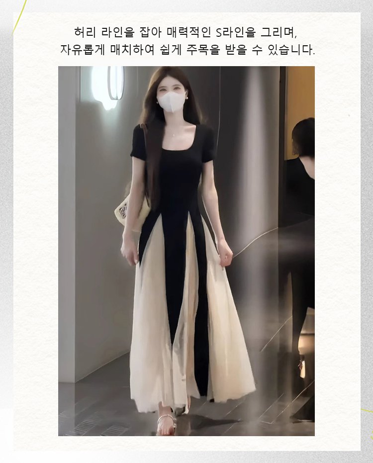 프렌치 스타일 허리 잡은 패치워크 원피스